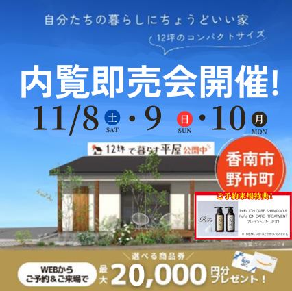 【香南市野市町】モデルハウス内覧即売会を開催!(11/8~10)