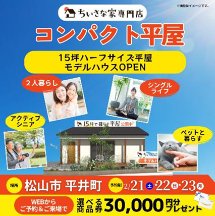 【松山市平井町】15坪のちいさな平屋見学会!(2/21~23)※松山本店