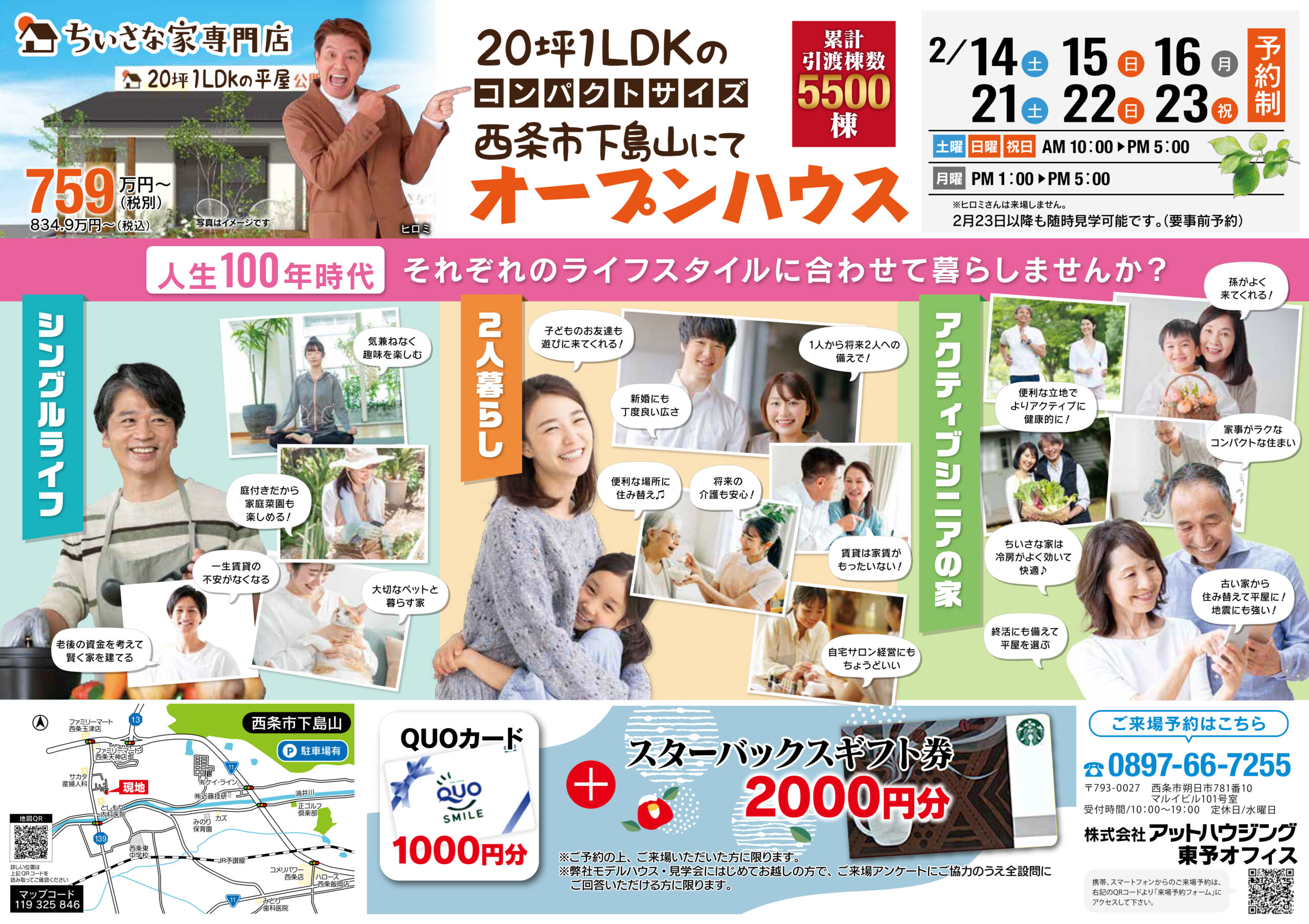 3月OPEN!【今治市常盤町】17坪2LDKモデルハウス 先行販売説明会を開催!(2/14~16)※会場は今治店にて行います
